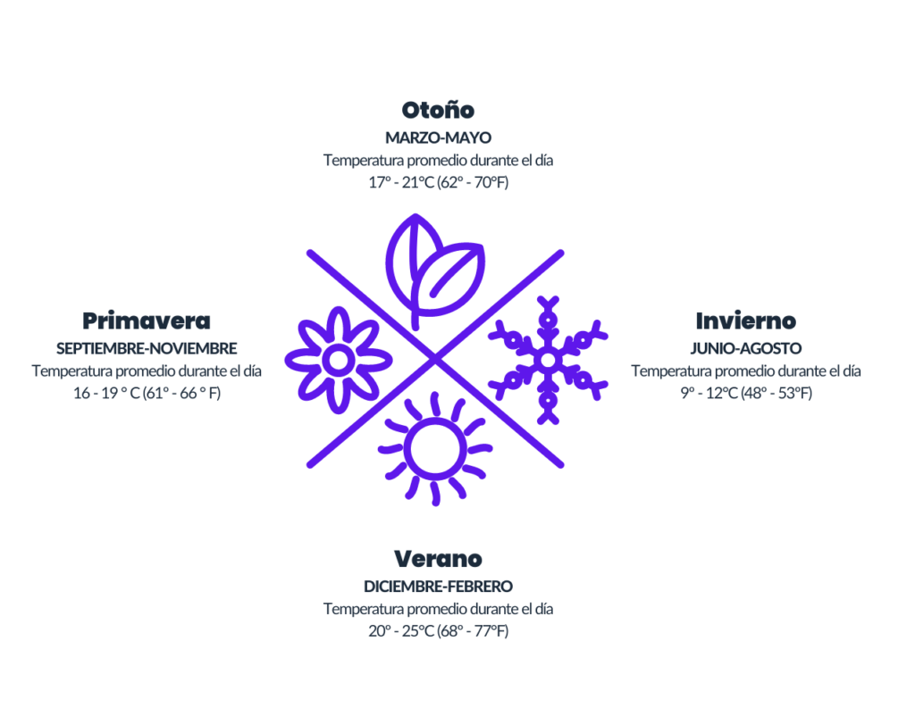 Nueva Zelanda maneja un clima sub-tropical, dominado por las 4 estaciones. Generalmente se puede describir como muy variable pero agradable.